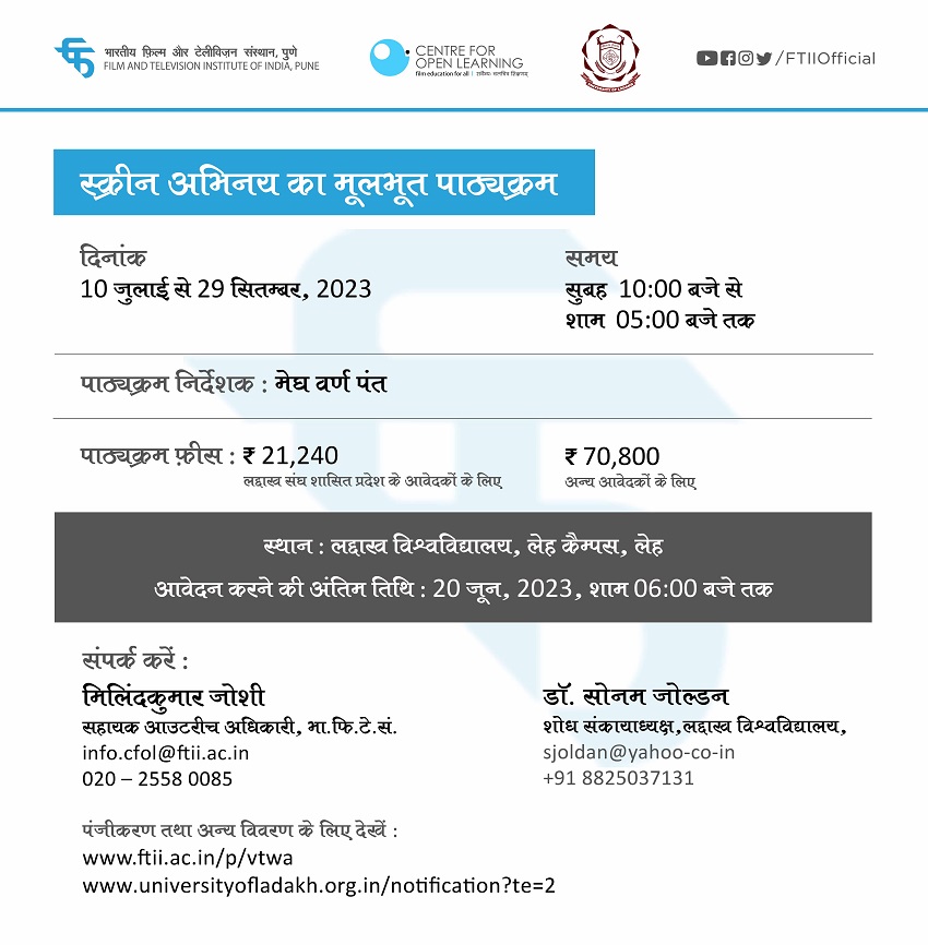 All efforts have been made to make the information as accurate as possible. Film and Television Institute of India will not be responsible for any loss to any person caused by inaccuracy in the information available on this Website. Any discrepancy found may please be brought to the notice of Film and Television Institute of India, Pune.